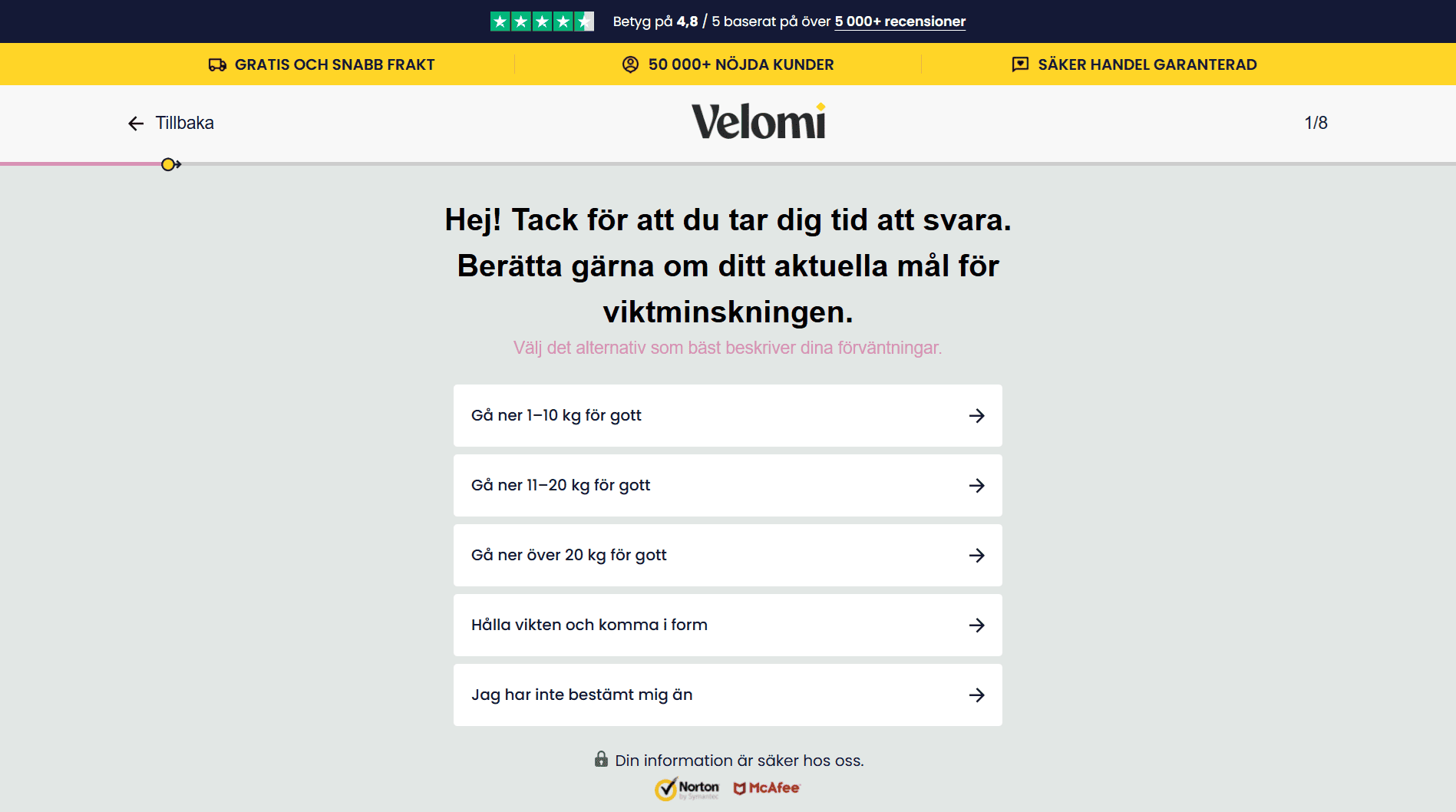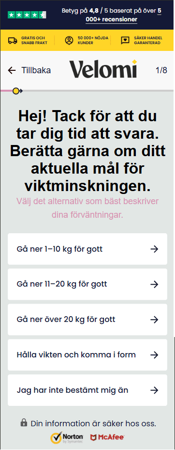 Välkommen till den officiella sidan för Velomi. Här hittar du den mest effektiva lösningen till marknadens bästa pris. Just nu erbjuder vi en exklusiv kampanj där du kan säkra din Velomi med en betydande prissänkning, vilket garanterar både kvalitet och äkthet direkt från källan.